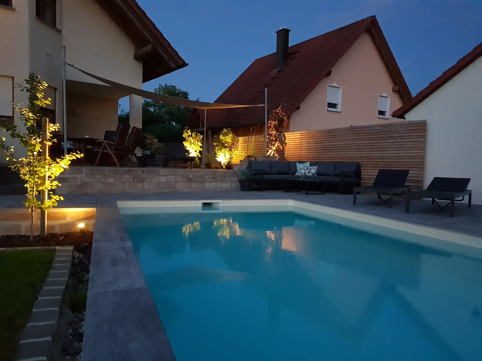 Mit sanftem Licht und dem plätschern von Wasser schaffen wir eine Oase der Ruhe. Außerdem erhält Ihr Garten von uns die nötige Pflege, damit er so schön bleibt wie er ist.